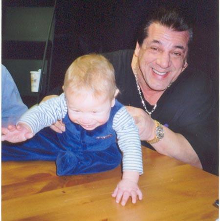 Mommy and daddy watch a TV show called "Oz" about life in prison. The reason I am running away from Chuck Zito, who plays Chucky Pancamo, is because he plays a bad man on the show. Actually, mom and dad tell me that most everyone on the show is bad, but I did not know that! Anyway, we met Chuck Zito and some others from the cast at a book signing for Oz. I thought I would be more scared, but as you will see, it was fun! |