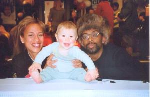I also met Spike Lee and his wife, Tonya Lewis Lee. They wrote a book called, "Please, Baby, Please" and were signing it at Barnes and Noble. Daddy and I went to get me some new books and Mr. and Mrs. Lee were nice enough to let me pose with them. The big smile on my face is because I had just finished playing with Spike's hat! It was furry and lots of fun to hold! |