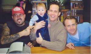 Here I am with (L-R) Evan Seinfeld, Dean Winters and Lee Tergesen. They all act on Oz and were at the book signing. Dean Winters thought that I was the cutest baby he had ever seen and wanted to take me home - daddy said that mommy would be upset if he did so he let daddy take me home. |