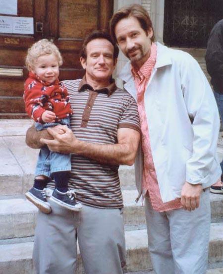 This is me with Robin Williams and David Duchovny. They were filming a movie in my neighborhood and daddy and I went over to say hello. When daddy asked if they would take a picture with me, Mr. Williams said that I looked like "Oscar Levant." I don't know who he is, but daddy said that he was a very short actor. |
