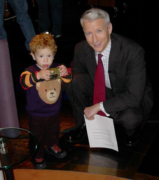 This is Anderson Cooper from CNN. The piece that Jeanne Moos did ran during his show, and then daddy and I talked to him live in the studio. Daddy tried to get a picture of me with Mr. Cooper while we were on the air, but I wouldn't pose. After the show, though, we took one and here it is. |