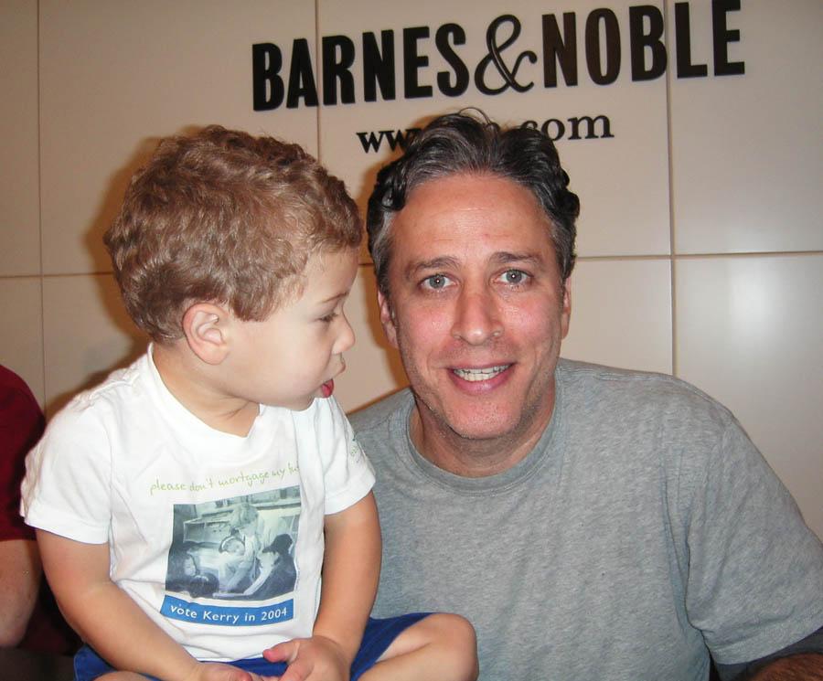 This is me with the host of Comedy Central's The Daily Show, Jon Stewart. I was just asking him where his little boy was when this picture was taken (he is much better at posing then me!). This was taken at a book signing for "America (The Book)" written by Jon and the Daily Show writers. There were 14 writers there - if writing is that hard I am not sure I want to learn! - and they all signed my book. Daddy and mommy really like his show, but all of the humor goes right over my head. Maybe one day I can have a playdate with his son. |