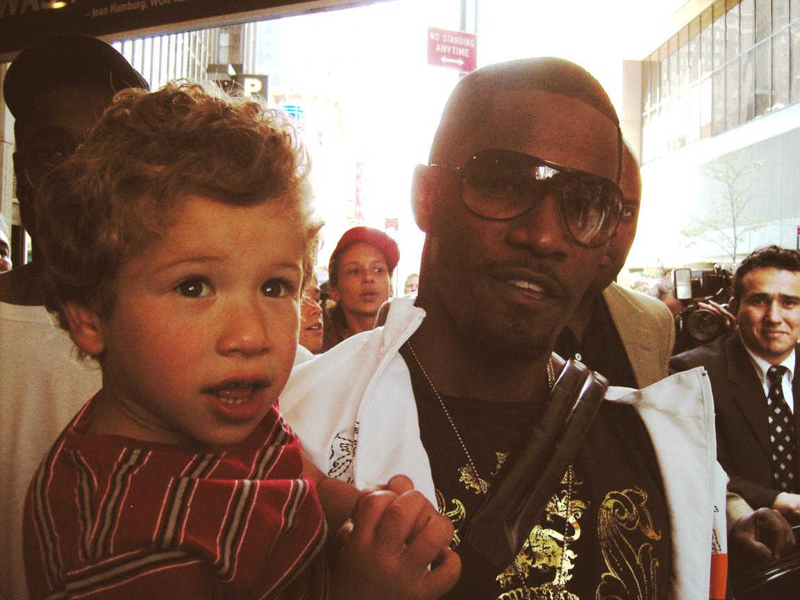 Recently, when dad and I were in the Times Square area, picking up tourist information for a cousin coming to New York, we saw a small crowd of people. We walked over to check it out and were told that Jamie Foxx was coming down to his car after an appearance on MTV's TRL. We waited about 10 minutes (in the shade) and then out came Mr. Foxx. He signed autographs for lots of people, but sadly people kept pushing and shoving. He was very kind and held me while daddy took a picture. |