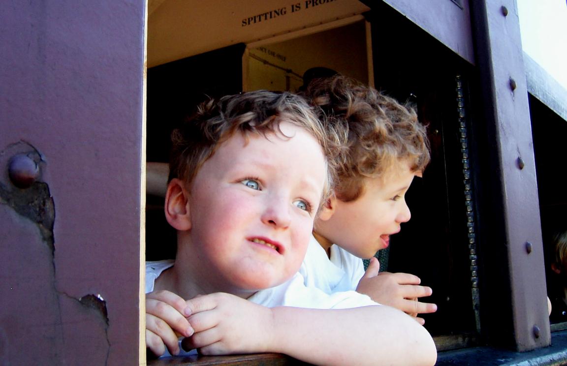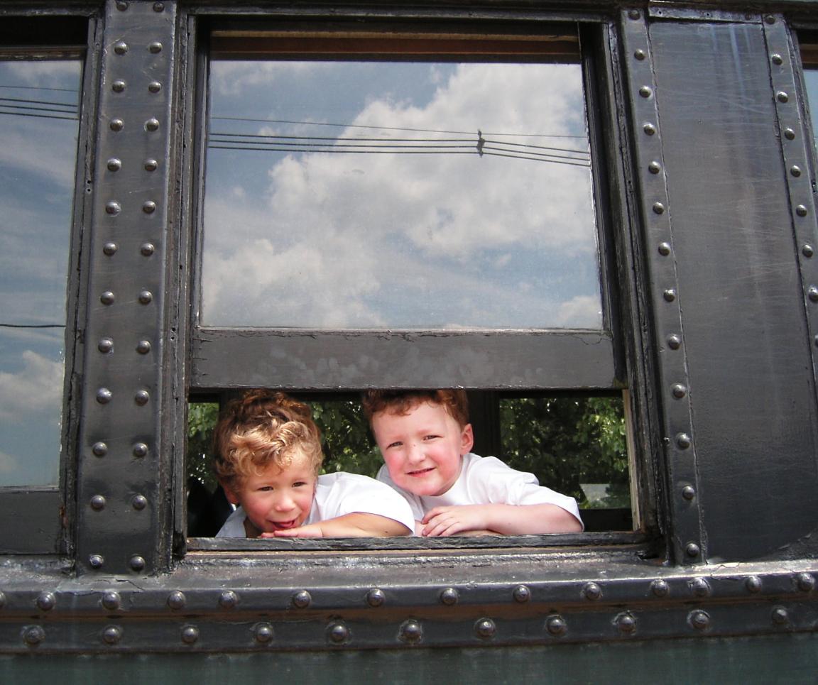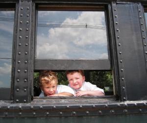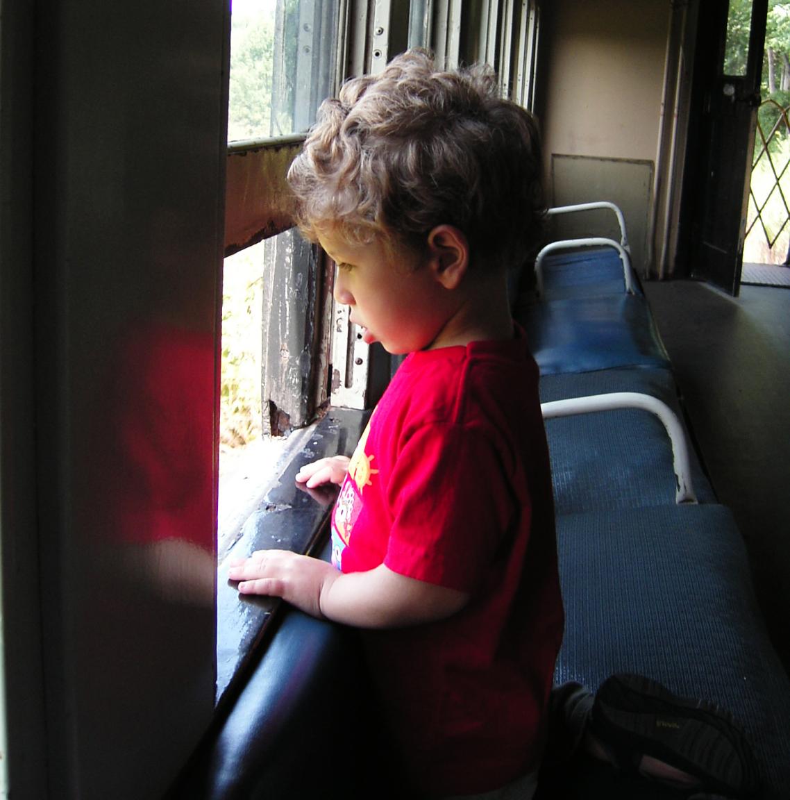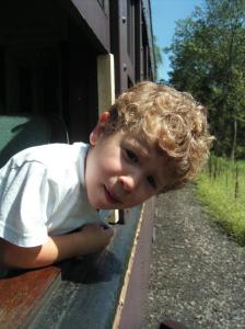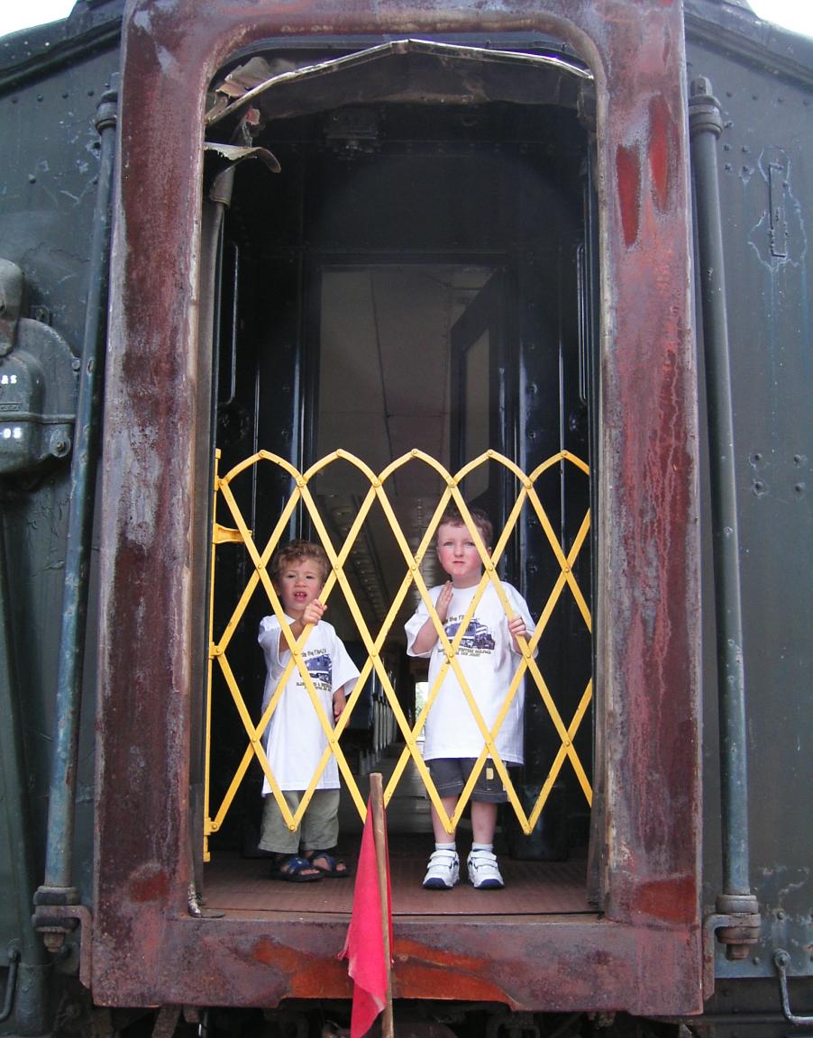 Here I am with my best friend, Eli. He is as big a train fan as I am. Daddy stuck the camera out of the window to take this picture and you can see how is captures the awe we felt just riding along. This was our first trip on a real steam engine. The noise, the steam, the whistle. WOW, Eli and I were in 7th heaven. I know that there are lots of trains to visit around the country, but I am just 3 1/2 years old. Don't worry though, I have lots of time! |