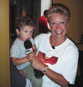 Maybe I should be a newscaster! This is me with Penny Crone from Fox 5 News in New York. A friend of my dads asked us to come to a press event at The Children?s Museum of Manhattan and it was broadcast during Fox's morning show, Good Day New York. Penny used me in a segment and let me play with the microphone. I even learned how to say "Fox 5: What New Yorkers Watch!" |