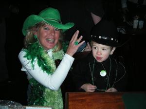 Last year I received an email from Tami in Hazlett, Texas. It seems that every year she and a group of friends come to New York to celebrate St. Patrick's Day. Well, she wanted to know if I might be available to come and meet her and her friends. Having never been to a bar, I said, "Sure." So, daddy and I trekked through the crowded canyons of New York to a really packed pub and met Tami and her very cool friends! When we got there she gave me an early Birthday present, this stunning black cowboy hat! All the way from Texas! That was a very neat way to say Howdy! |