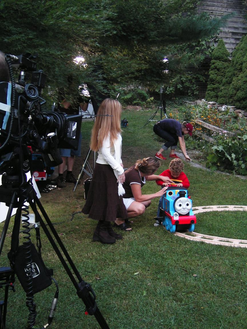 Here I am on the set, very early in the morning. I was amazed at all of the people and equipment it takes ti make a commercial, but more than that, I was amazed at how much fun I had on the Ride-Along Thomas the Tank Engine! |