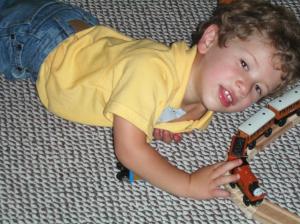 When I was not working I was playing with trains. Here I am with Duke, my newest Thomas train. I had a long day, but one that I will remember for a long time! |