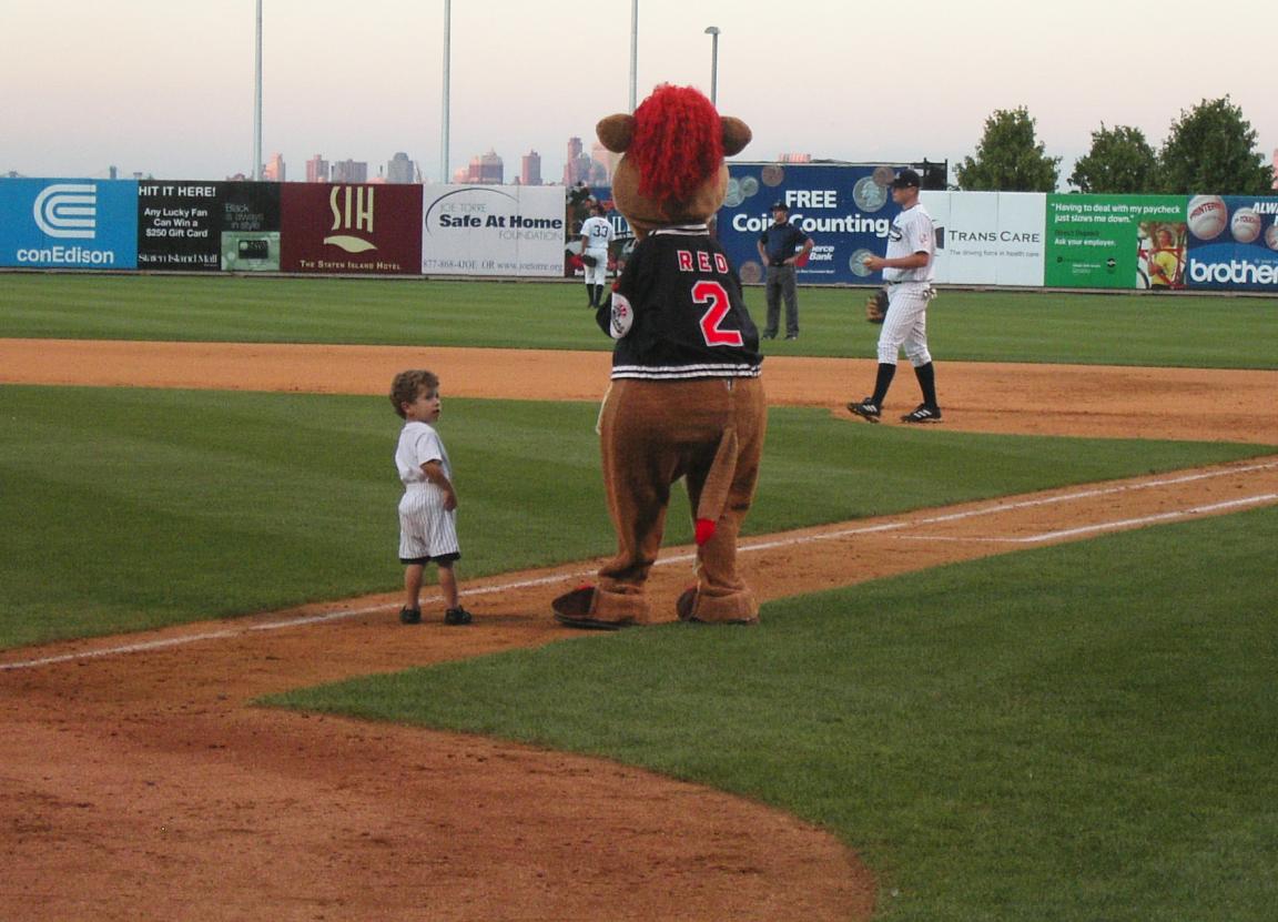 During Labor Day Weekend, my mommy and daddy and I went to see The Staten Island Yankees play the Aberdeen Ironbirds. It was my 2nd Staten Island Yankees game and they won with two out in the bottom of the ninth. It was all very exciting, but what was really exciting was that I got to run the bases during the game. (Don't worry, it was between innings!) Here are some pictures! |