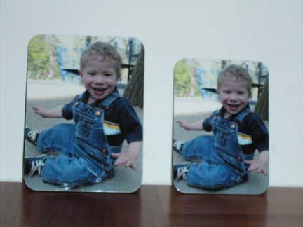 These are two magnets that were sent to me by the really nice folks at "Remember This, Remember That Magnets" They liked my pictures and said that they would look great on a magnet. My mommy and daddy sent them a JPEG and this is what they sent us. We put them right up on the fridge! My mommy and daddy liked them so much that they are ordering more for my Grandparents! You can reach them at www.magnetqueen.com or call them at (800) 248-5605. |